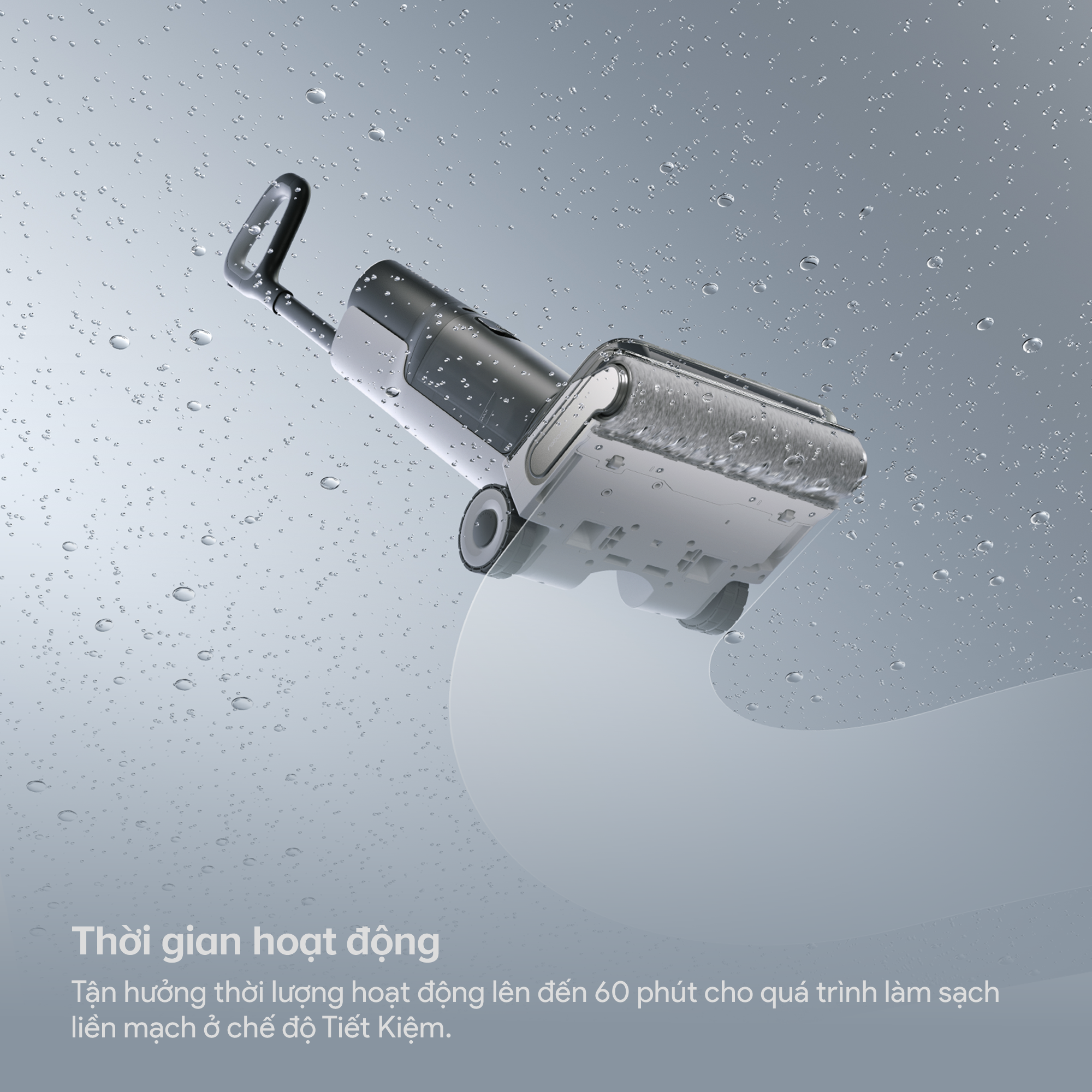 - Lực hút 20.000Pa kết hợp lực ép 20N giúp làm sạch sâu, xử lý vết bẩn cứng đầu và khử khuẩn 99,99%*