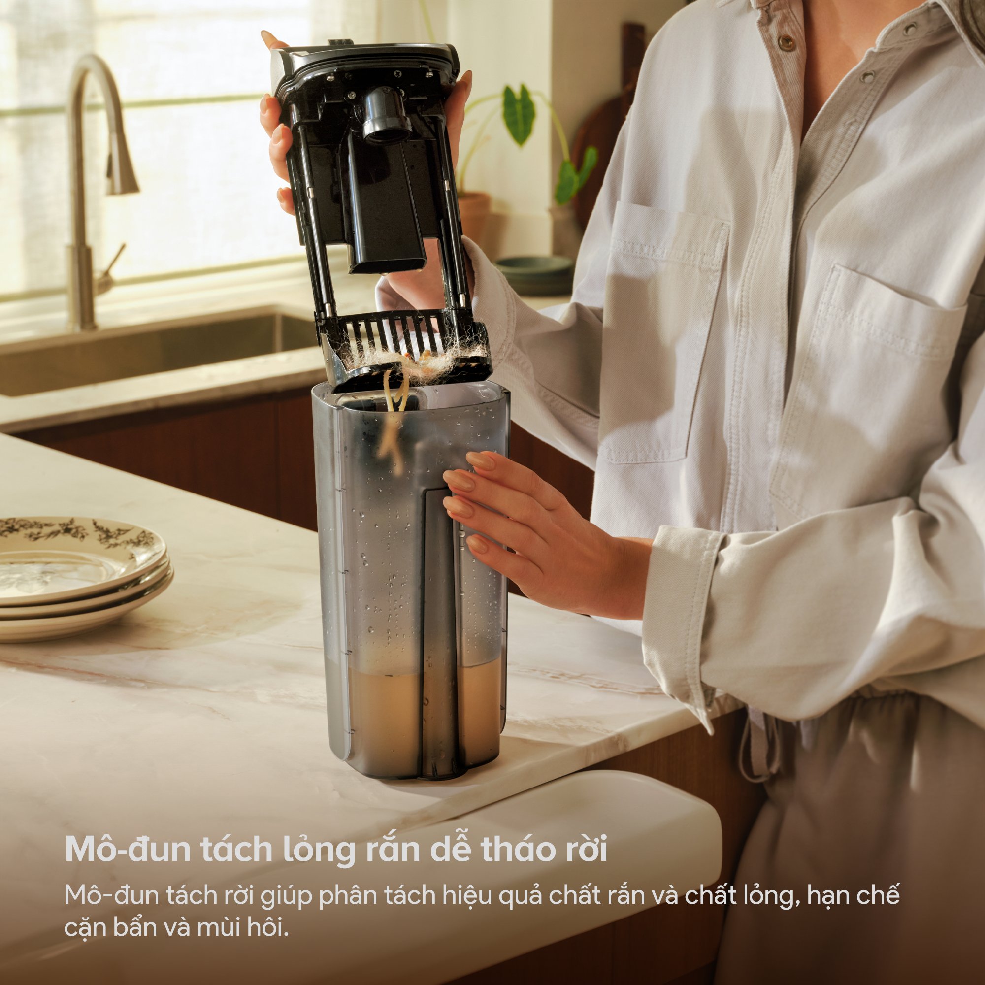 - Jawscrapers chống rối tóc kết hợp mô-đun tách lỏng – rắn, dễ vệ sinh và hạn chế mùi