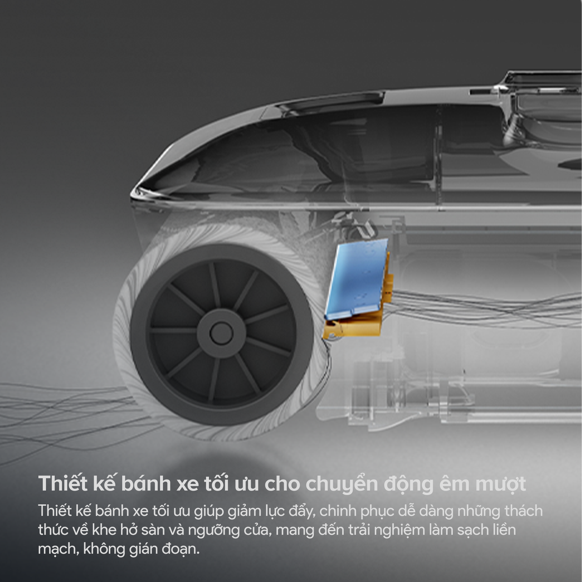 - Thiết kế siêu mỏng 12,5cm (FlatReach 2.0) cùng con lăn lau sát viền, dễ dàng làm sạch gầm thấp, góc tường và mép sàn